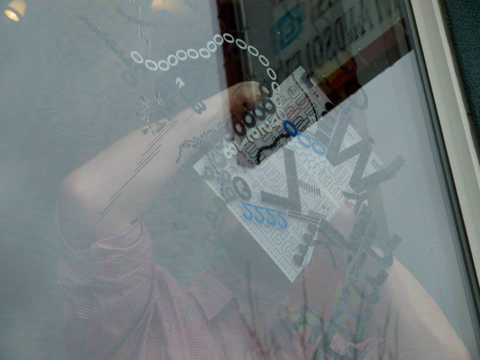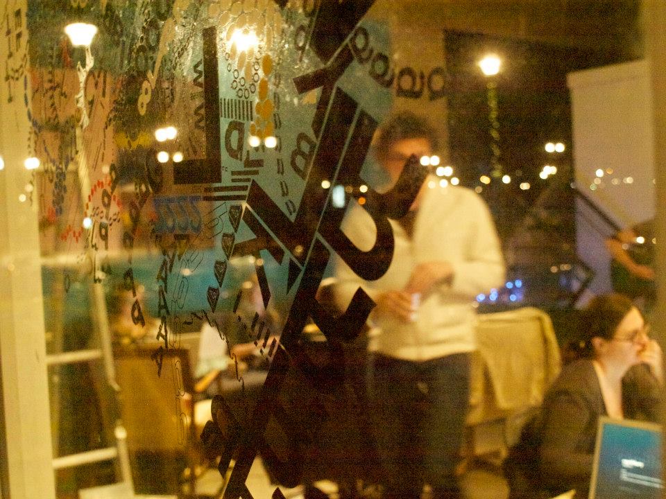 Responsive to the shapes of letters, and movement outside the window, this poem will remain permanently on the window of LOFT 112 as a reminder of the fundraising efforts.