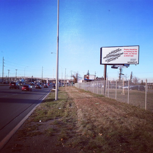 Word Powered Art presents a text-based poem by derek beaulieu to appear on digital billboards located along Macleod Trail and along Barlow Trail, beginning September 15 and leading up to the 19th annual Wordfest from October 14-19.