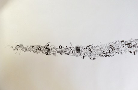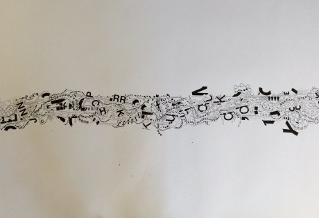 Photographs of a new work in progress … this piece is 36″ (3ft) x 192″ (16ft), letraset on paper.