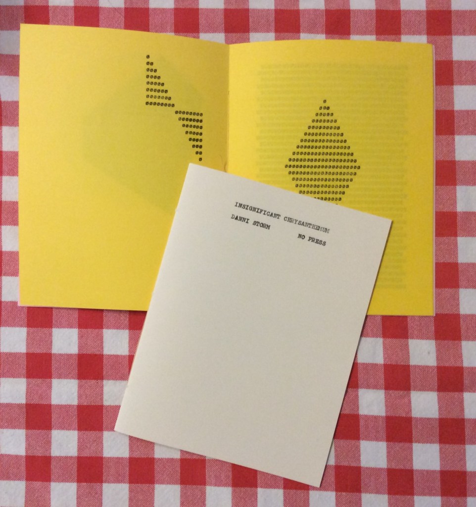 (full-colour typewriter concrete poetry, 20 pgs, limited edition of 50 sewn copies)