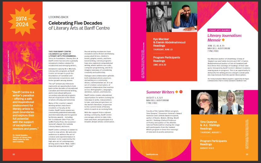 THIS YEAR BANFF CENTRE CELEBRATES 50 YEARS OF LITERARY ARTS PROGRAMMING. Since its foundation, Literary Arts at Banff Centre has become a globally renowned creative catalyst for established and emerging writers.